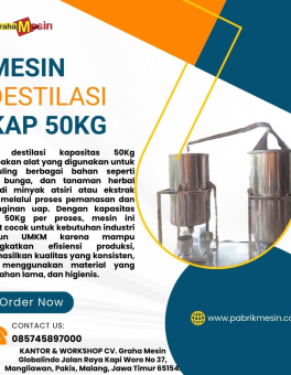 *Harga Hubungi CSMesin destilasi kapasitas 50Kg adalah solusi ideal untuk usaha penyulingan bahan alami seperti daun, bunga, akar, dan berbagai tanaman herbal menjadi minyak atsiri dan ekstrak bernilai tinggi. Mesin ini dirancang untuk menghasilkan proses destilasi yang efisien, higienis, dan konsisten sehingga sangat cocok digunakan dalam industri minyak atsiri, herbal, farmasi, hingga kosmetik. Dengan kapasitas besar, mesin… selengkapnya