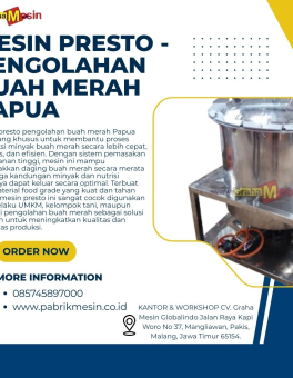 *Harga Hubungi CSMesin presto buah merah Papua adalah alat yang sangat penting dalam usaha pengolahan buah merah, khususnya untuk menghasilkan minyak buah merah secara optimal dan higienis. Mesin ini dirancang untuk membantu proses pemasakan buah merah menggunakan sistem tekanan tinggi sehingga daging buah menjadi lebih lunak dan mudah diekstraksi. Dengan penggunaan mesin presto, proses pengolahan menjadi lebih… selengkapnya