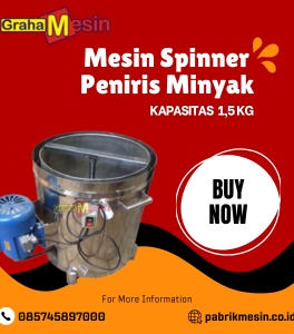 *Harga Hubungi CSMesin spinner peniris minyak kapasitas 1,5 kg merupakan alat yang sangat berguna untuk memisahkan minyak dari hasil gorengan. Alat ini sangat populer di kalangan pelaku usaha kuliner, restoran, warung makan, dan juga rumah tangga yang sering memasak gorengan. Mesin ini membantu mengurangi kadar minyak pada makanan, membuatnya lebih sehat dan mengurangi rasa berminyak yang kurang… selengkapnya